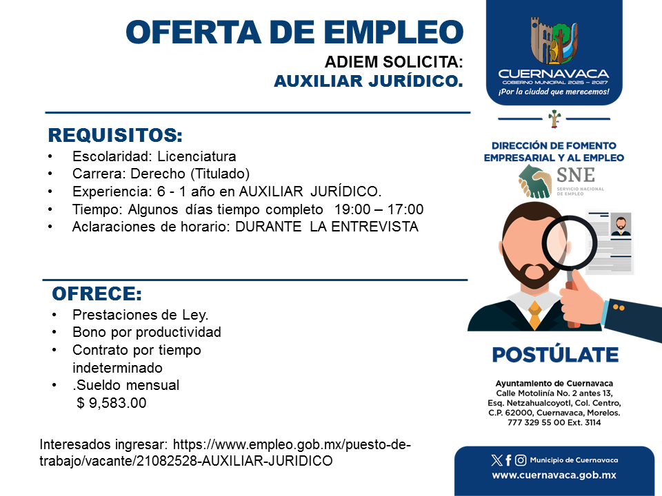 Por favor, para apuntarte a este trabajo visita www.empleo.gob.mx.