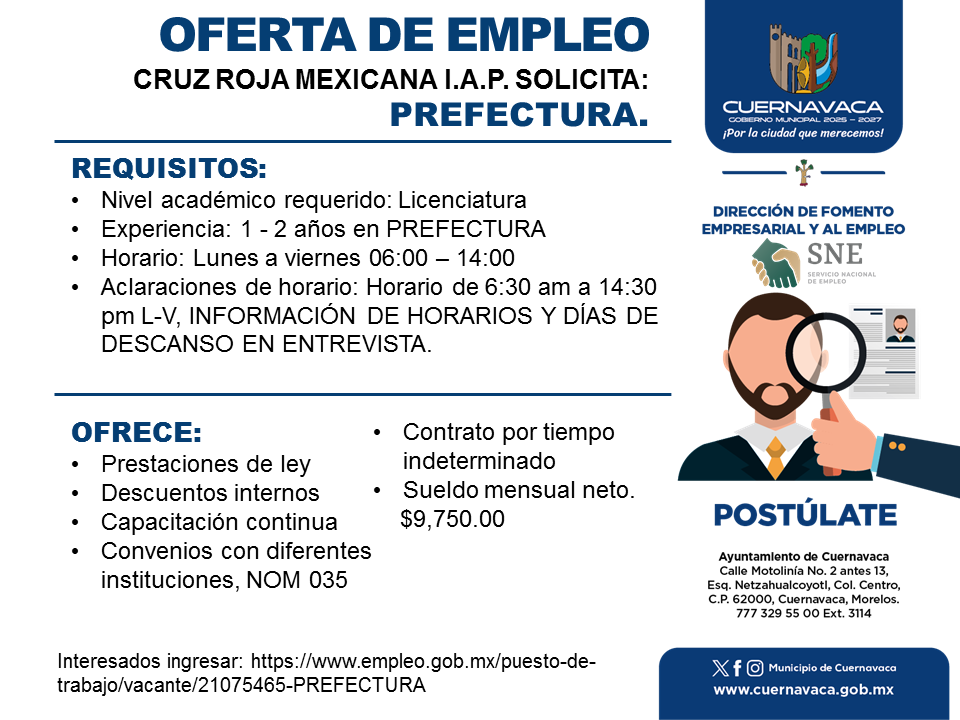 Por favor, para apuntarte a este trabajo visita www.empleo.gob.mx.