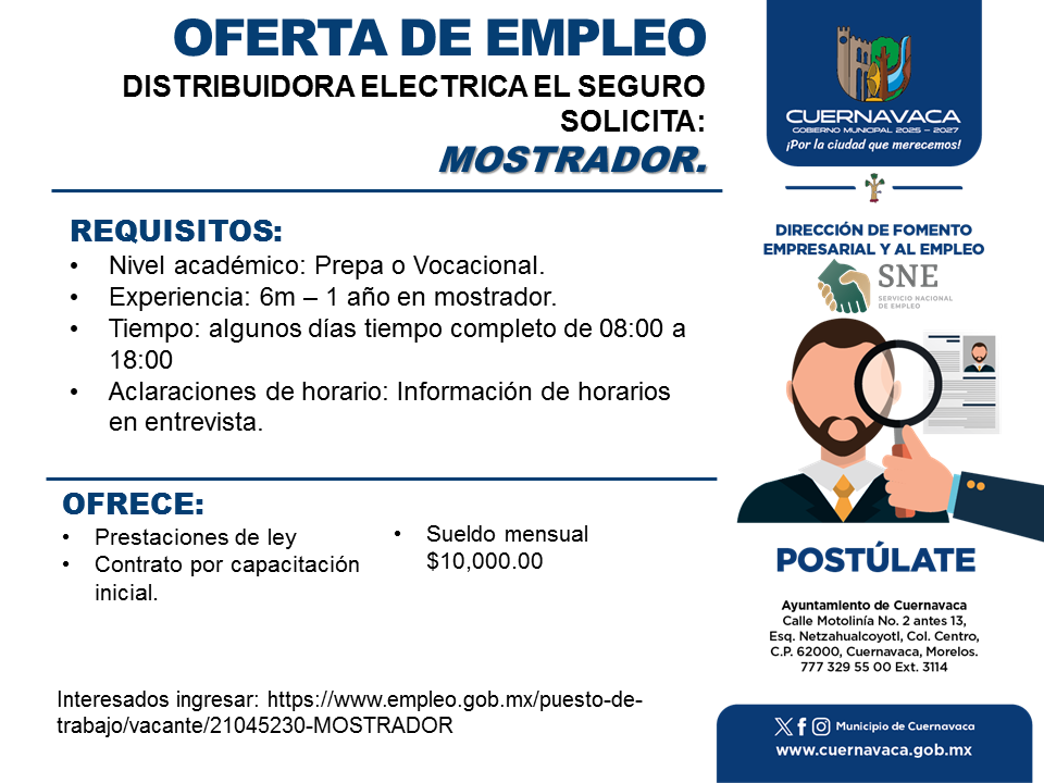 •Tiempo: algunos días tiempo completo de 08:00 a 18:00