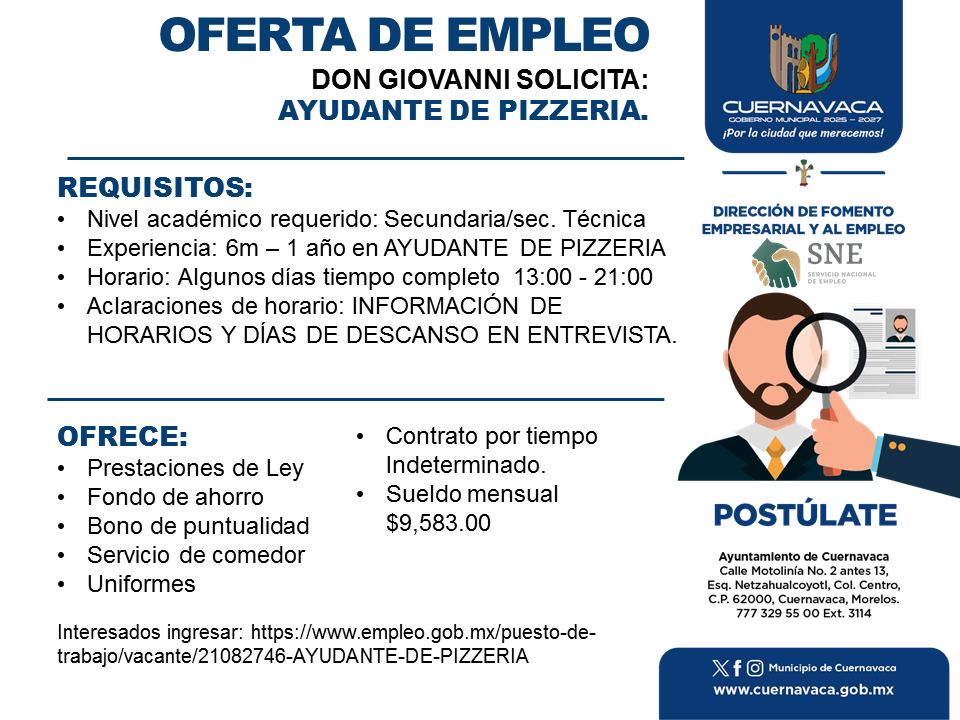 Por favor, para apuntarte a este trabajo visita www.empleo.gob.mx.