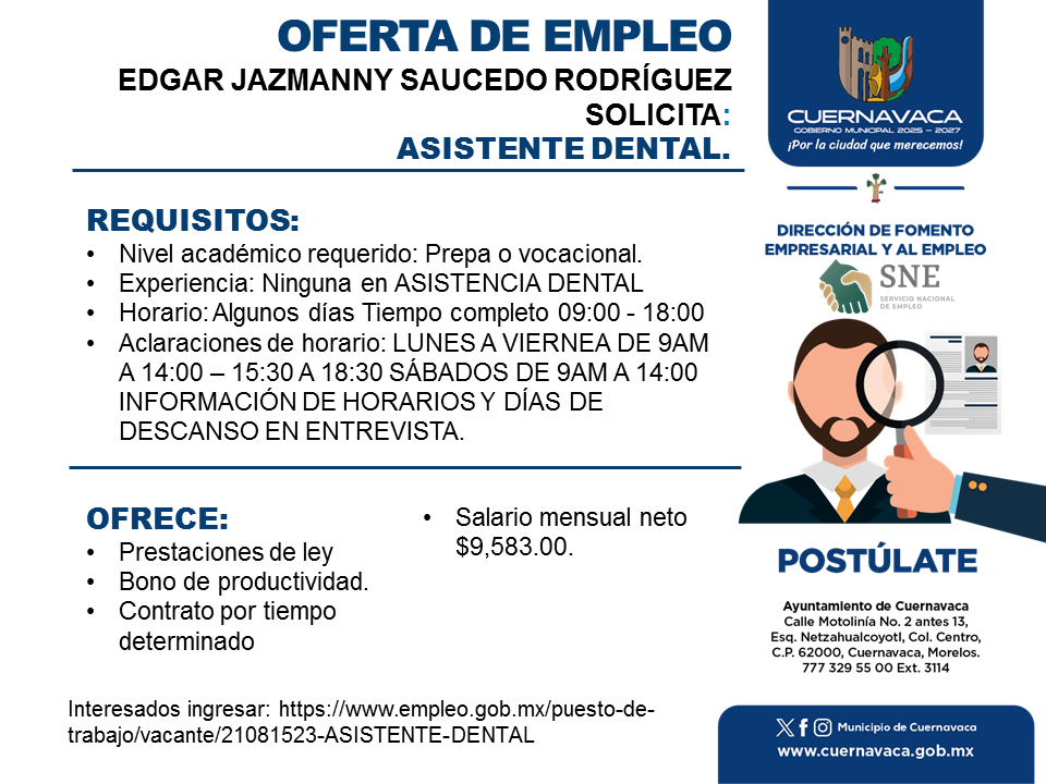 Por favor, para apuntarte a este trabajo visita www.empleo.gob.mx.