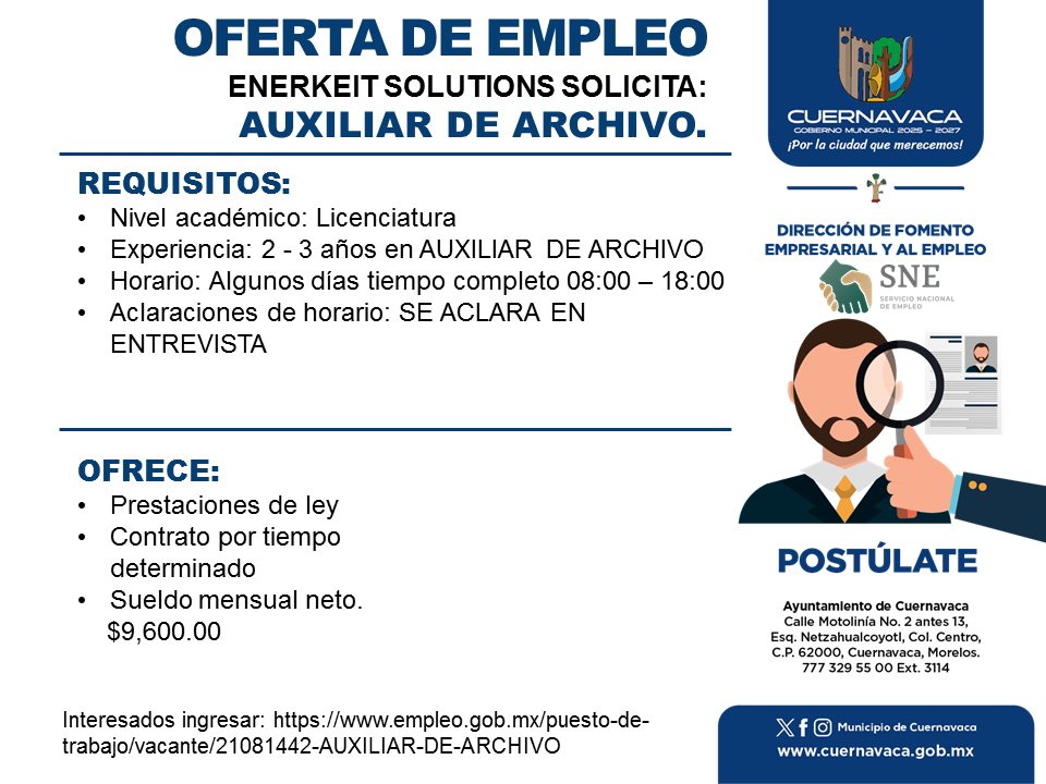 Por favor, para apuntarte a este trabajo visita www.empleo.gob.mx.