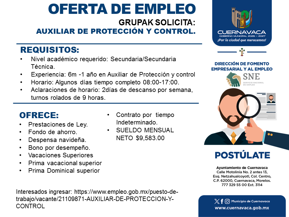 Por favor, para apuntarte a este trabajo visita www.empleo.gob.mx.