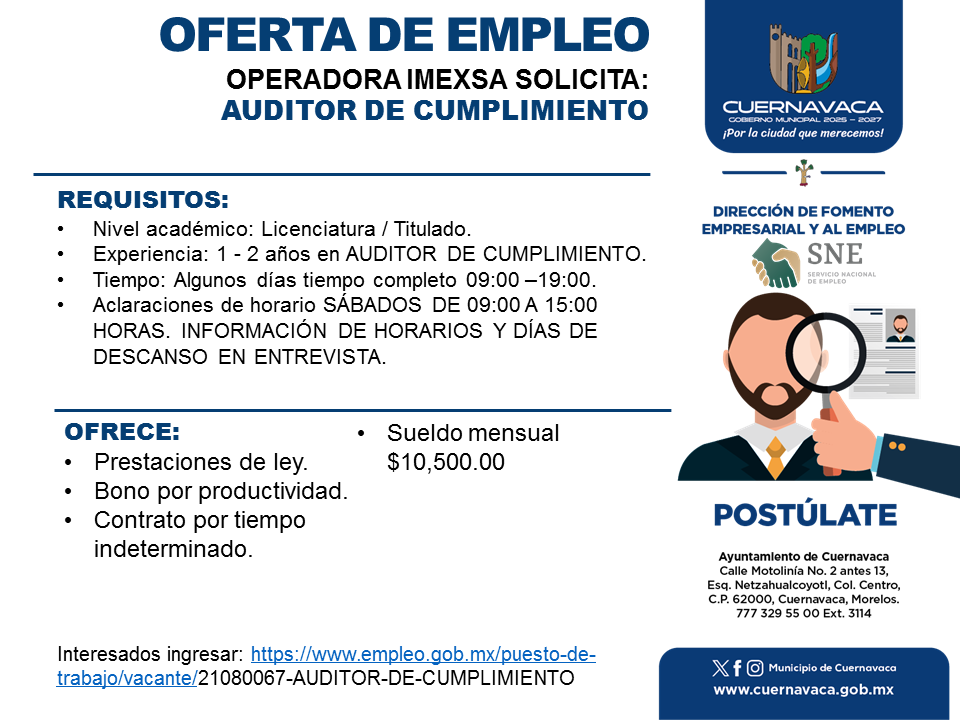 Por favor, para apuntarte a este trabajo visita www.empleo.gob.mx.