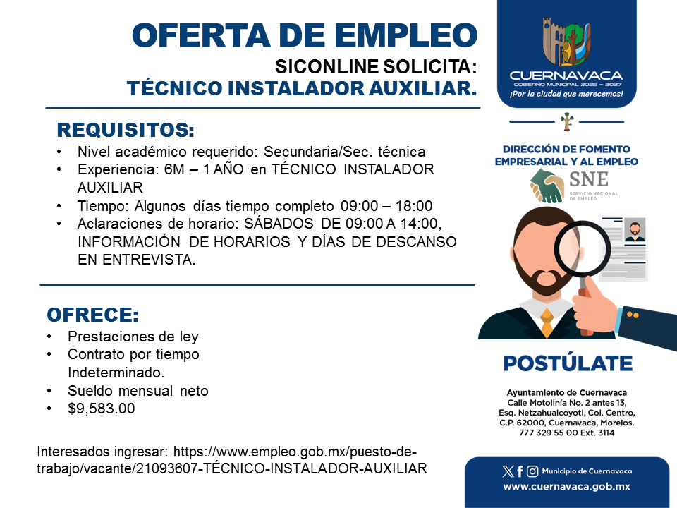 Por favor, para apuntarte a este trabajo visita www.empleo.gob.mx.