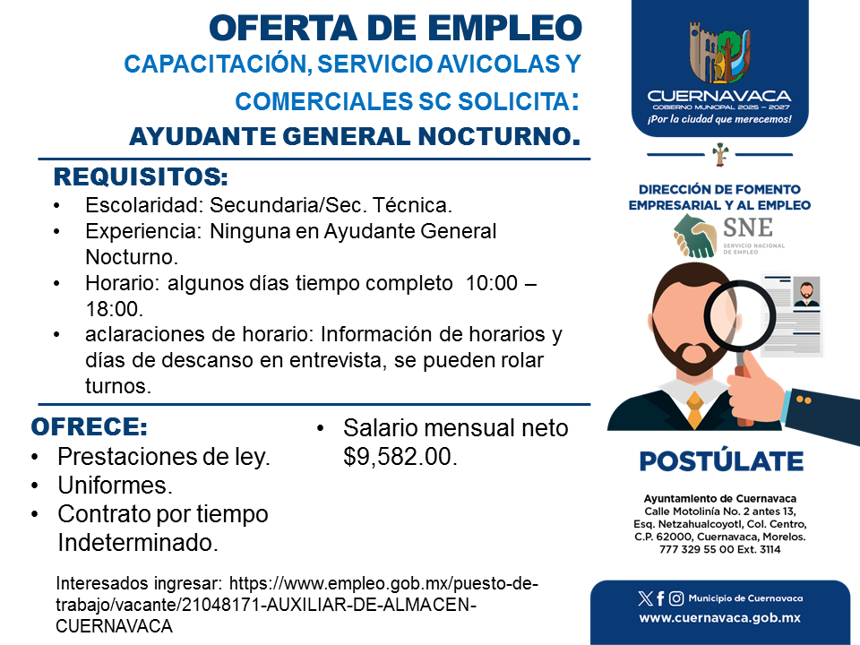 •Experiencia: Ninguna en Ayudante General Nocturno.