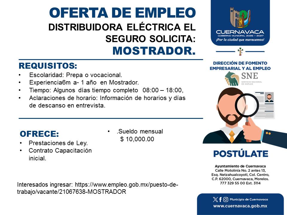 •Tiempo: Algunos días tiempo completo 08:00 – 18:00,