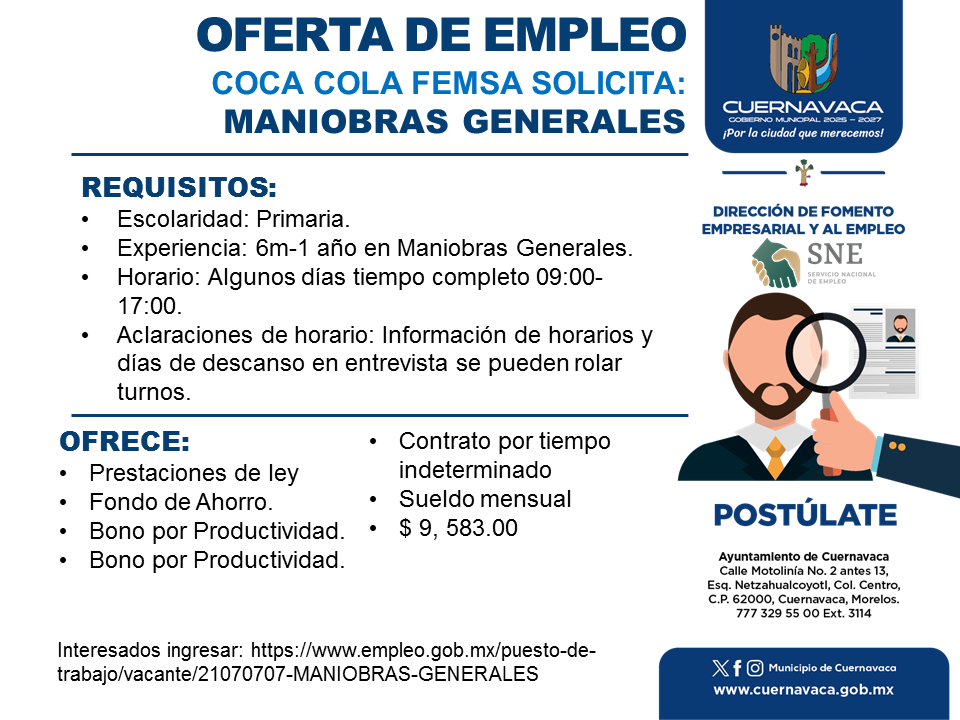 •Experiencia: 6m-1 año en Maniobras Generales.