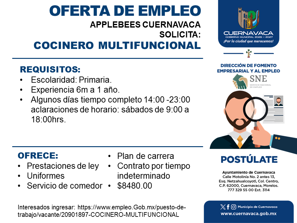 •Algunos días tiempo completo 14:00 -23:00 aclaraciones de horario: sábados de 9:00 a 18:00hrs.