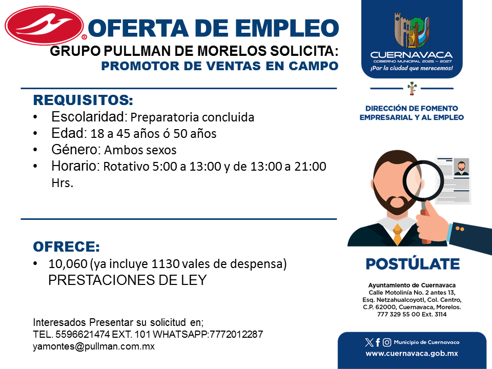 •Horario: Rotativo 5:00 a 13:00 y de 13:00 a 21:00 Hrs.