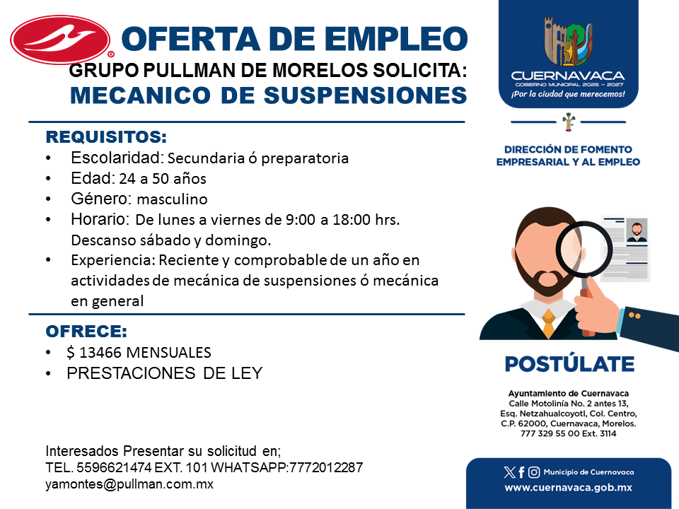•Experiencia: Reciente y comprobable de un año en actividades de mecánica de suspensiones ó mecánica en general