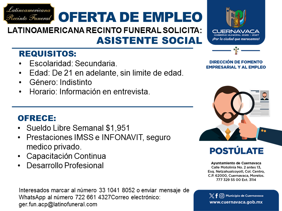 •Prestaciones IMSS e INFONAVIT, seguro medico privado.