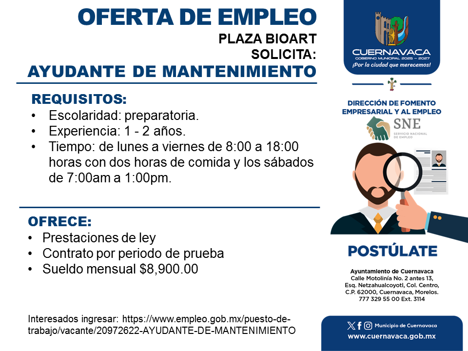 •Sueldo mensual $8,900.00