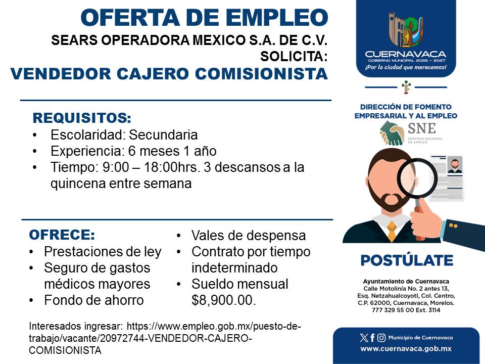•Sueldo mensual $8,900.00.