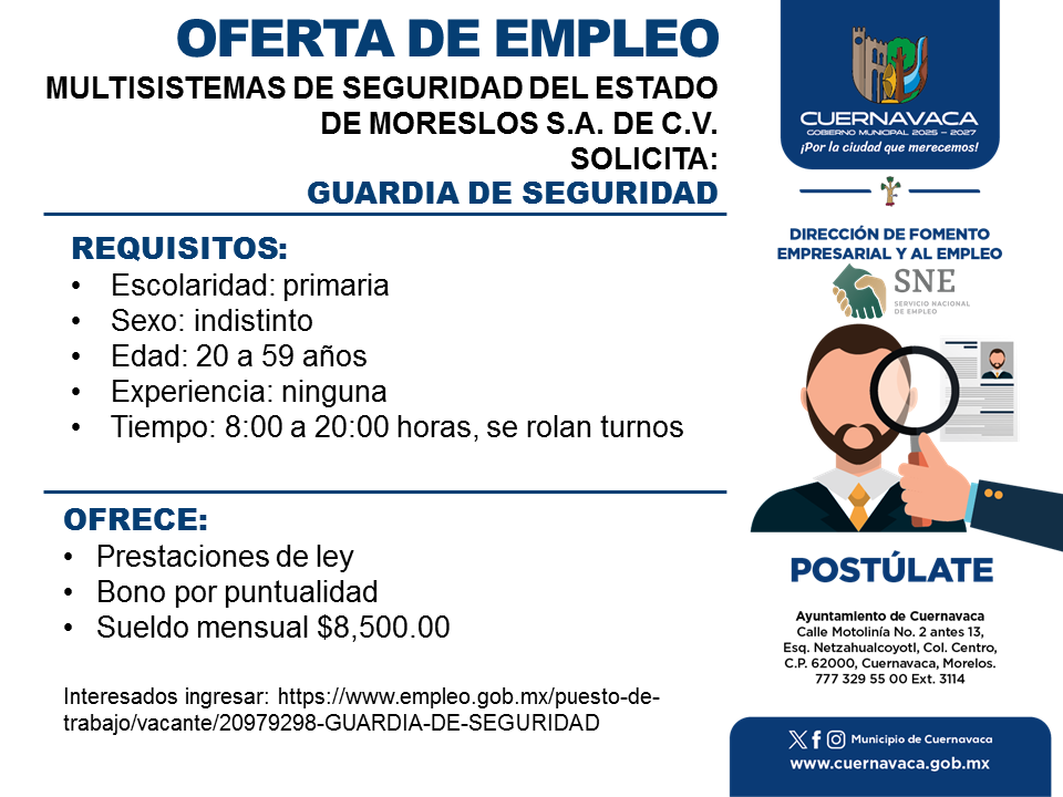 •Tiempo: 8:00 a 20:00 horas, se rolan turnos