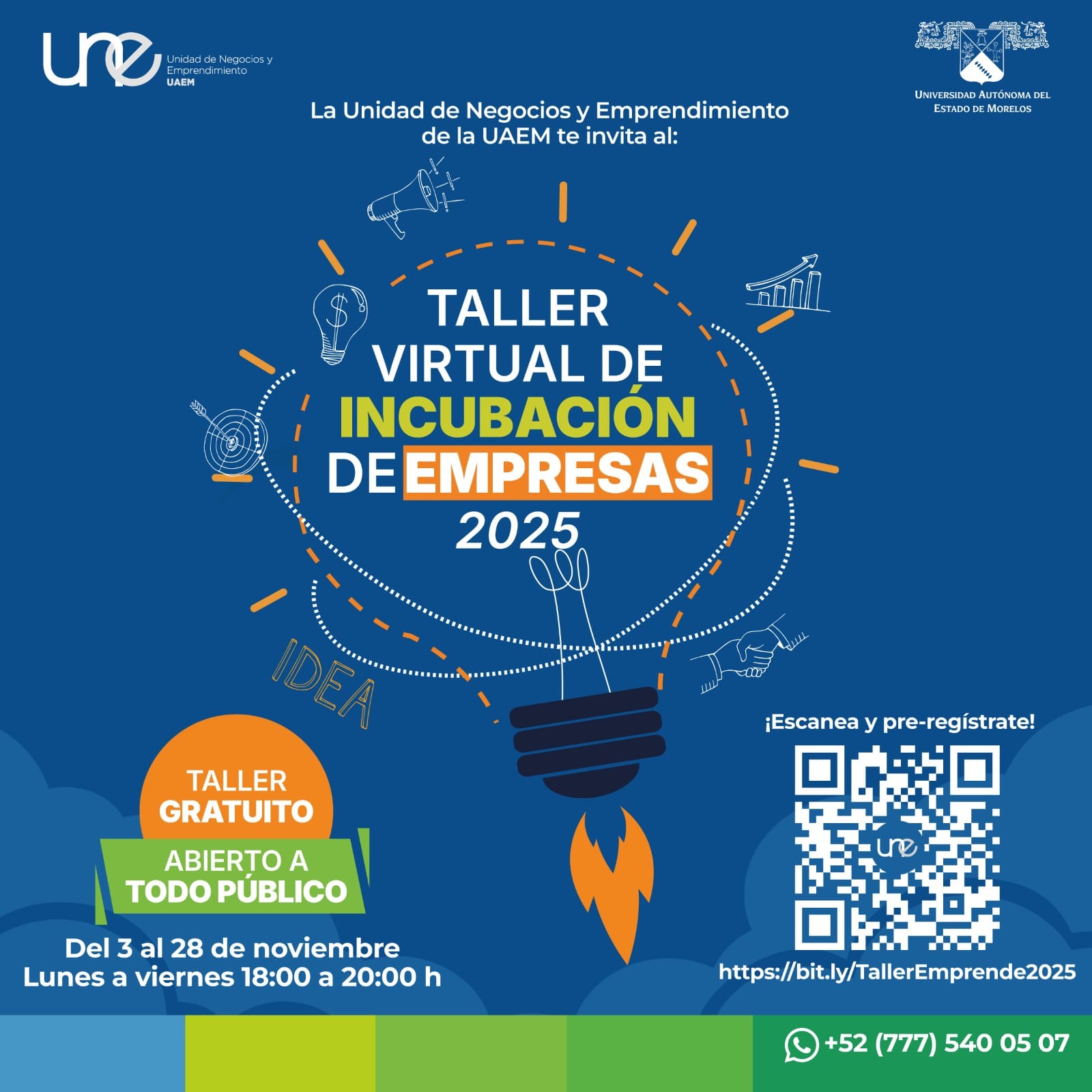 La Unidad de Negocios y Emprendedores de la Universidad Autónoma del Estado de Morelos te invitan al Taller Virtual de Incubación de Negocios