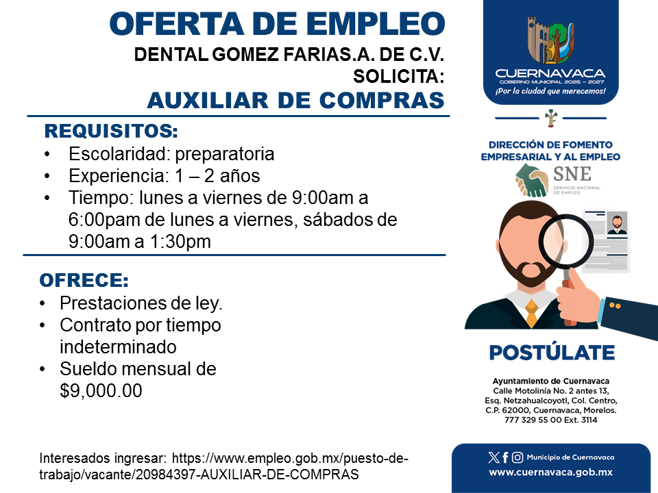 •Tiempo: lunes a viernes de 9:00am a 6:00pam de lunes a viernes, sábados de 9:00am a 1:30pm