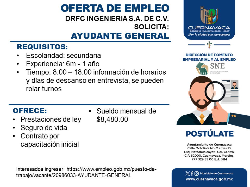 •Sueldo mensual de $8,480.00