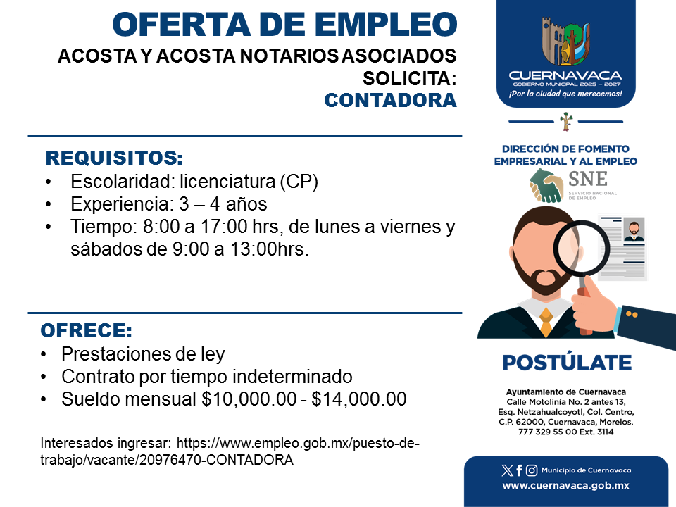 •Sueldo mensual $10,000.00 – $14,000.00