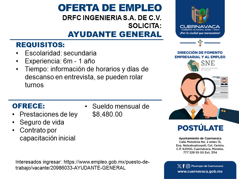•Tiempo: información de horarios y días de descanso en entrevista, se pueden rolar turnos