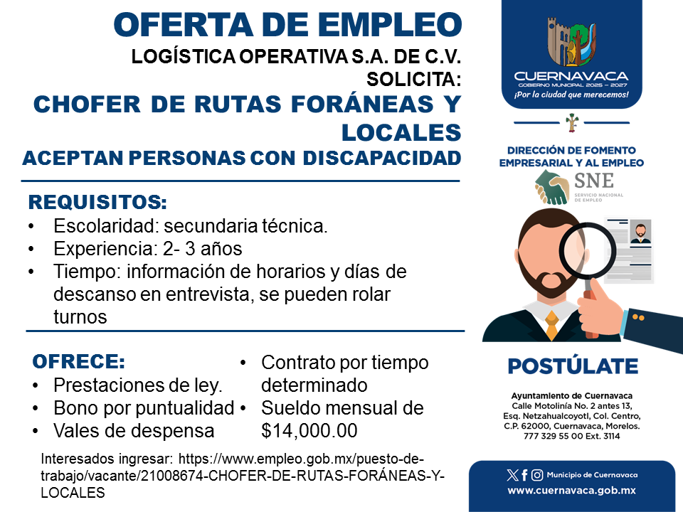 •Sueldo mensual de $14,000.00