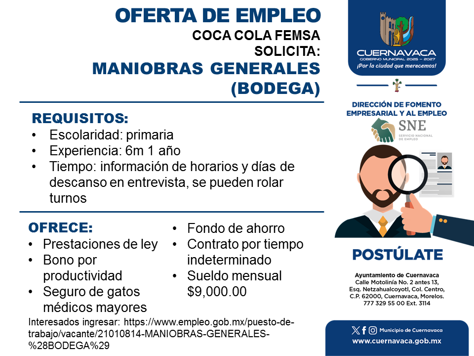 •Sueldo mensual $9,000.00