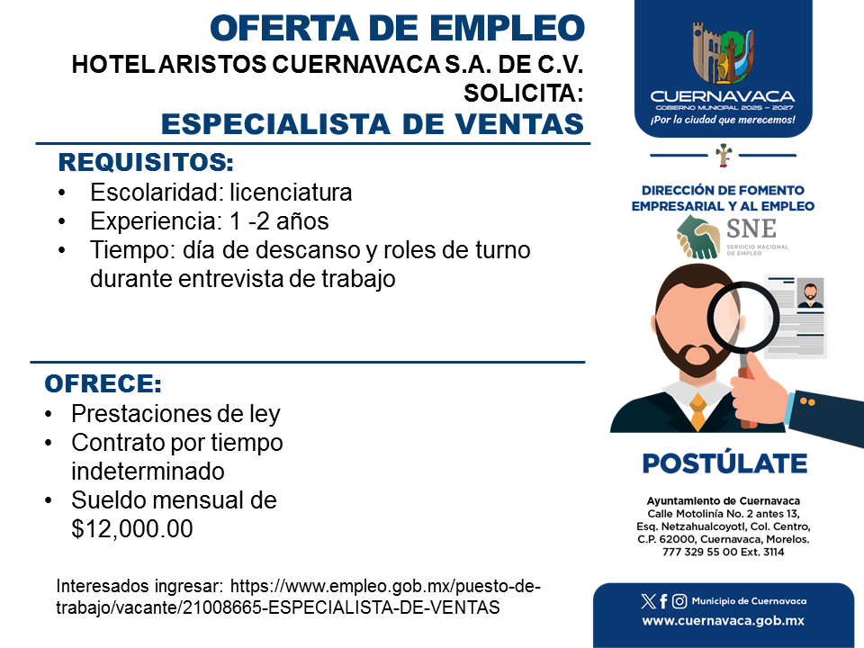 •Sueldo mensual de $12,000.00