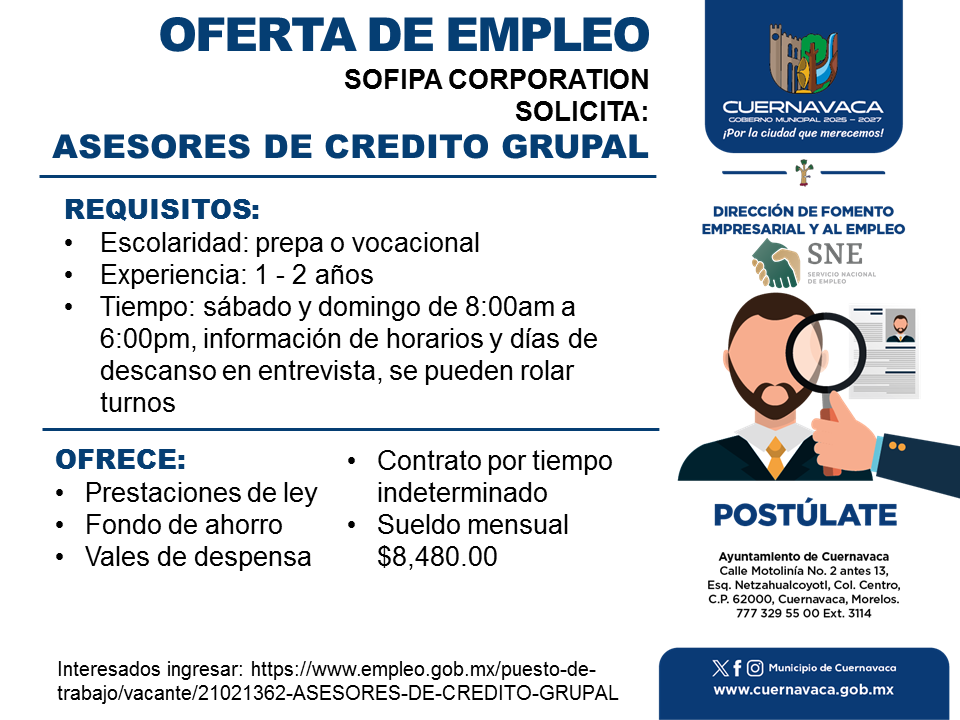 •Tiempo: sábado y domingo de 8:00am a 6:00pm, información de horarios y días de descanso en entrevista, se pueden rolar turnos