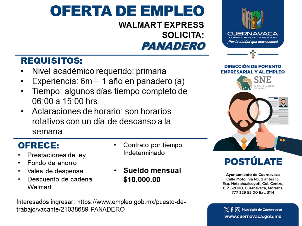 •Tiempo: algunos días tiempo completo de 06:00 a 15:00 hrs.