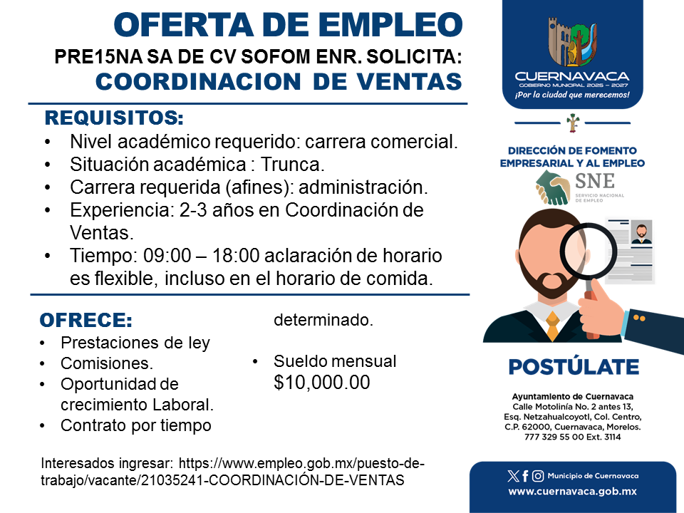 •Experiencia: 2-3 años en Coordinación de Ventas.