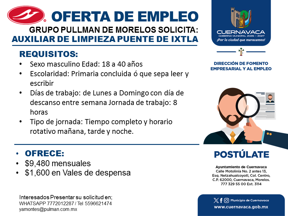 •Tipo de jornada: Tiempo completo y horario rotativo mañana, tarde y noche.