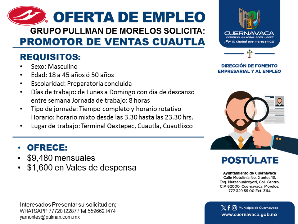 •Lugar de trabajo: Terminal Oaxtepec, Cuautla, Cuautlixco