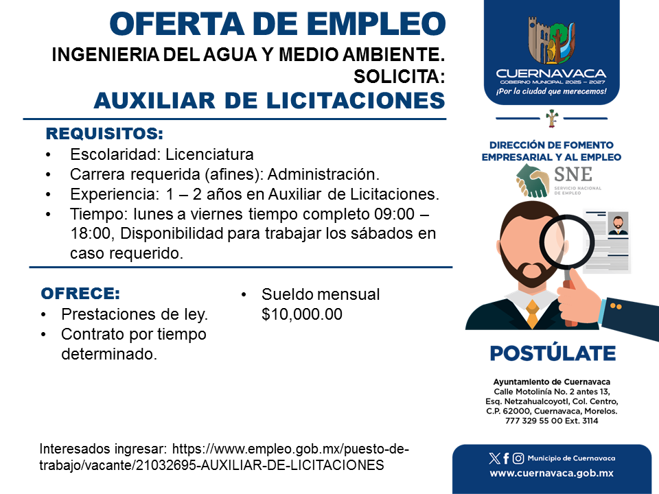 •Experiencia: 1 – 2 años en Auxiliar de Licitaciones.