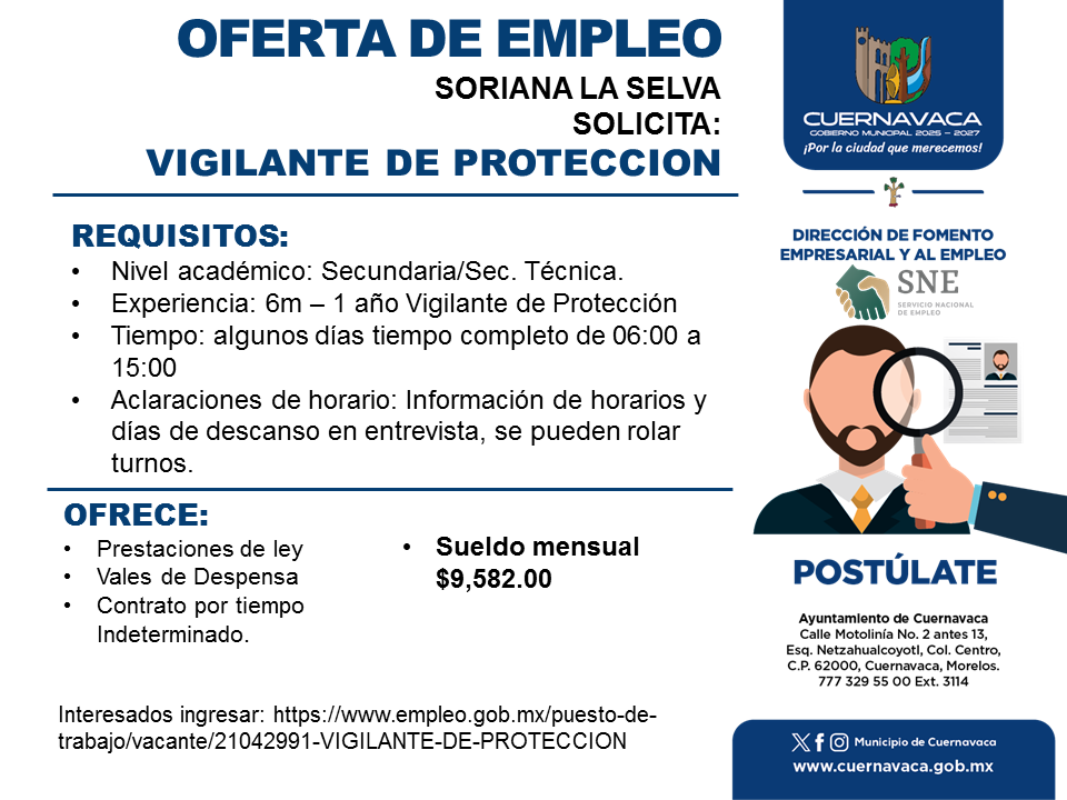 •Experiencia: 6m – 1 año Vigilante de Protección