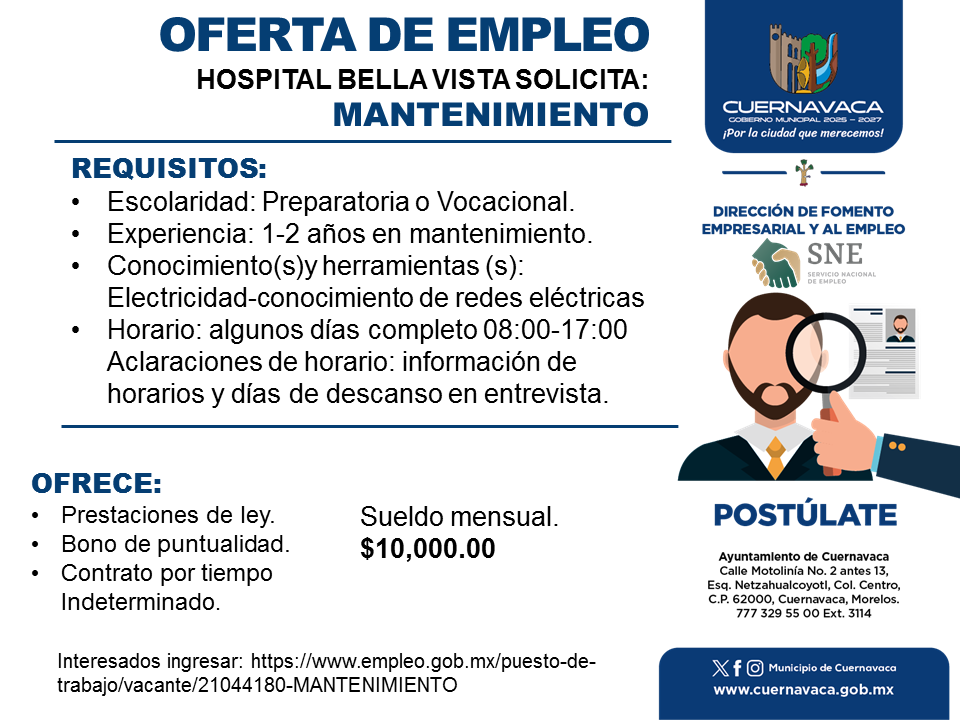 •Experiencia: 1-2 años en mantenimiento.