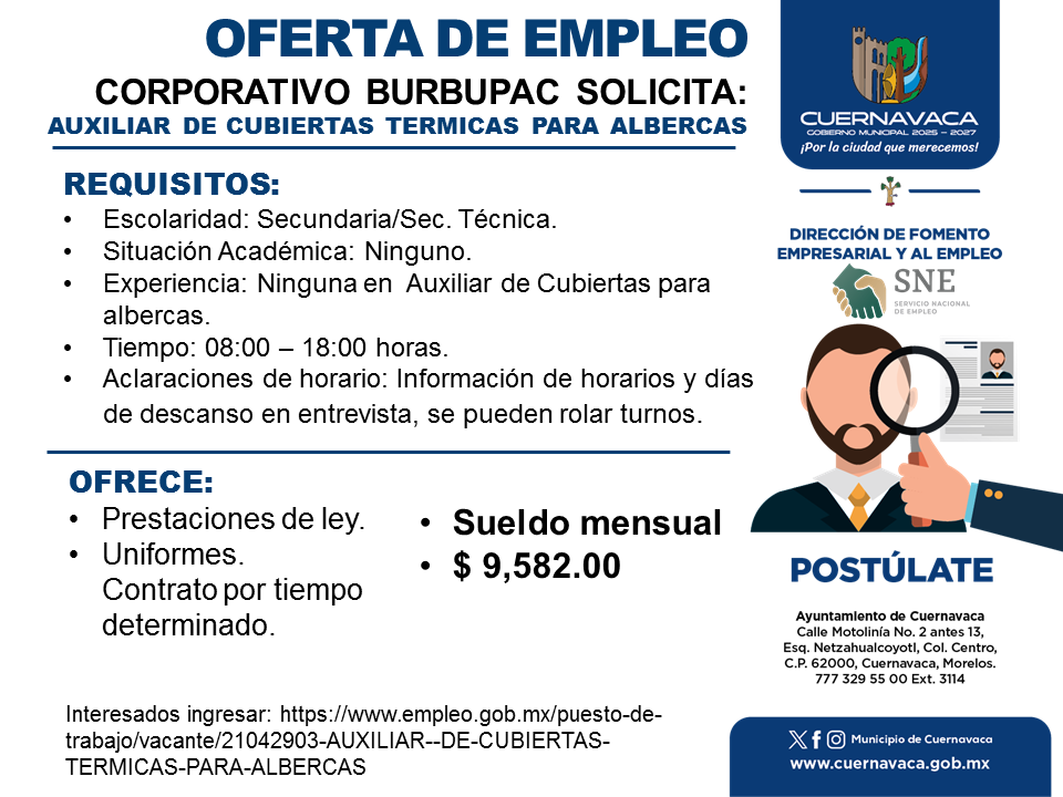 •Experiencia: Ninguna en Auxiliar de Cubiertas para albercas.