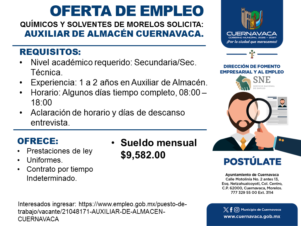 •Nivel académico requerido: Secundaria/Sec. Técnica.